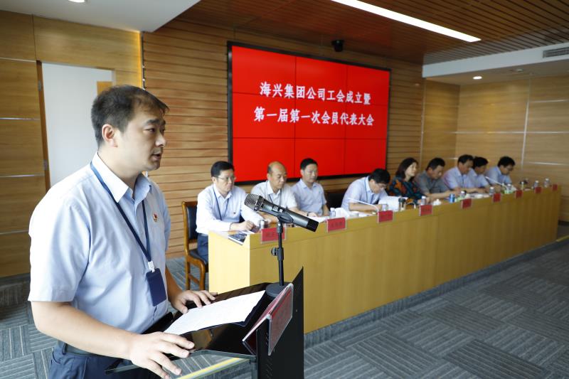 8月5日,海興集團公司工會成立暨第一屆會員代表大會第一次全體會議順利召開,標志著集團公司工會組織正式成立。鹽城市總工會黨組成員、副主席周彩楓,市屬企業(yè)工會聯(lián)合會主席何忠,集團黨委書記、董事長楊亞成出席會議。會議由集團黨委副書記、總經(jīng)理王益軍主持。集團領(lǐng)導(dǎo)班子成員,市總工會基層工作部部長徐廣坤,市屬企業(yè)工會聯(lián)合會副主席韓雷,濱海港工業(yè)園區(qū)黨群工作部部長姚士界出席會議,來自集團各個崗位73名工會會員代表參加會議。