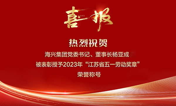 喜報!熱烈祝賀海興集團(tuán)黨委書記、董事長楊亞成被表彰授予2023年“江蘇省五一勞動獎?wù)隆睒s譽稱號