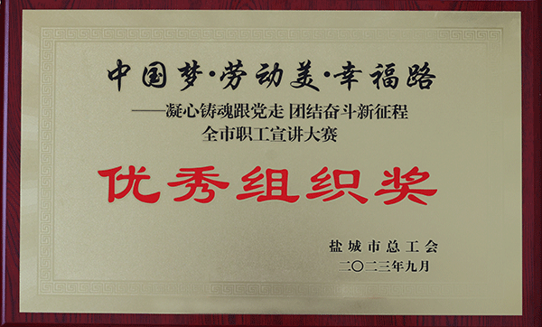 為深入學習貫徹習近平新時代中國特色社會主義思想和黨的二十大精神。市總工會開展了“強國復興有我”群眾性宣傳教育活動。9月20日,“中國夢·勞動美·幸福路——凝心鑄魂跟黨走 團結奮斗新征程”全市職工宣講比賽決賽在射陽縣工人文化宮舉行,海興集團獲“優秀組織獎”,工會職工姜晏獲優秀獎。2023-09-22