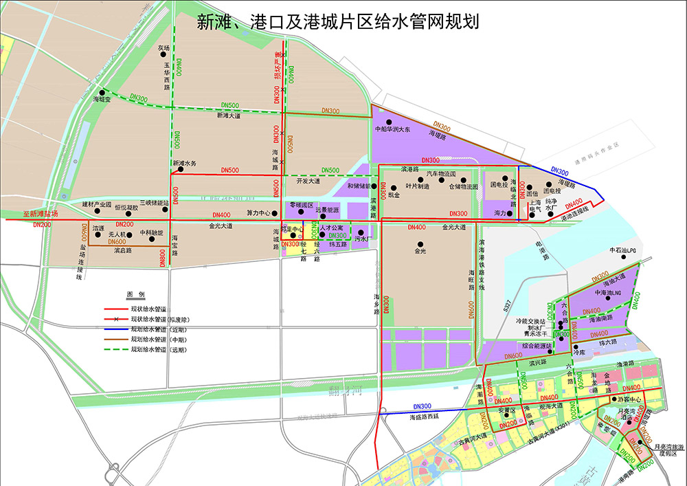 給水管道方面,已建成DN100以上管道100公里;規劃分期新建給水管道50.43公里,總投資約7727.5萬元。其中近期建設3.98公里,總投資約389.5萬元,覆蓋濱海港區通用碼頭、港城片區等區域;中期建設25.85公里,總投資約4124萬元,覆蓋綜合能源站、冷鏈物流產業園等區域;遠期建設20.6公里,總投資約3214萬元,確保新灘、港口、港城片區管網呈環狀布置,全面提升黃海新區供水可靠性。