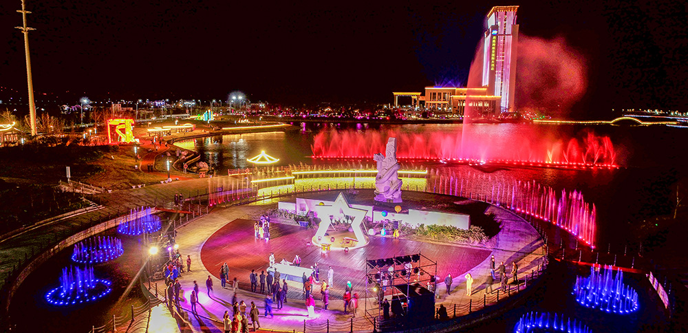 靈龍湖公園陸域面積330畝、水域面積370畝,是一座承載古黃河文化、淮河文化元素的復合型濱湖生態公園,采用“一島、一環、四片區”的空間格局,以綠為韻、以水為脈,將自然與生態完美融合,延續著兩河及海洋文化記憶。特色景點包括:親子樂園、水幕映畫、音樂噴泉、舞龍廣場、生肖廣場、網紅打卡點主題雕塑等景點,打造生態自然的主客共享公共休閑空間。